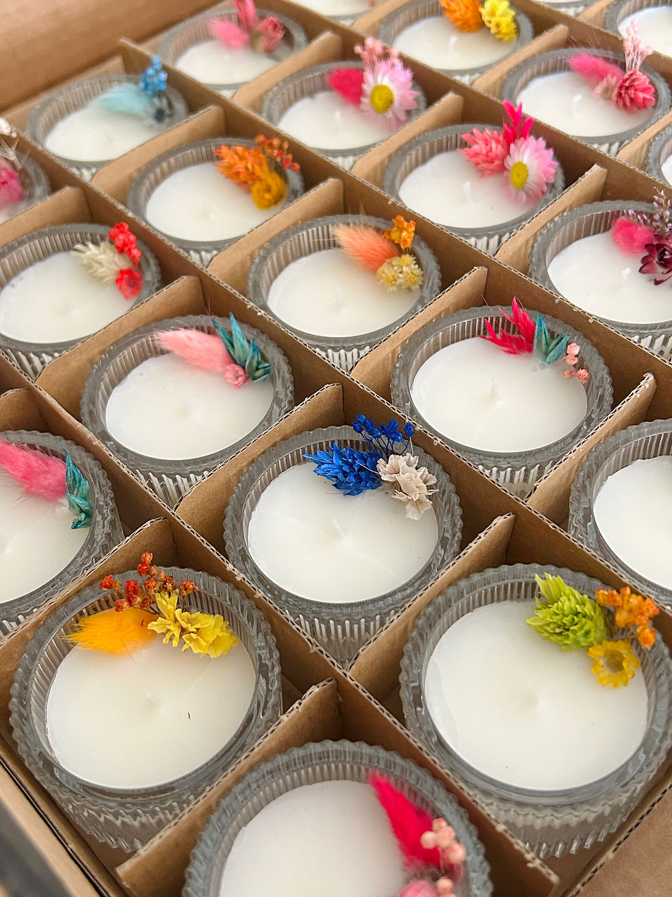 Breng warmte en natuurlijke charme in huis met onze handgemaakte kaarsen, liefdevol gegoten en versierd met echte droogbloemen. Elke kaars is uniek en gemaakt van hoogwaardige was en zorgvuldig geselecteerde bloemen. Perfect als cadeau of als sfeervol accent in je interieur.